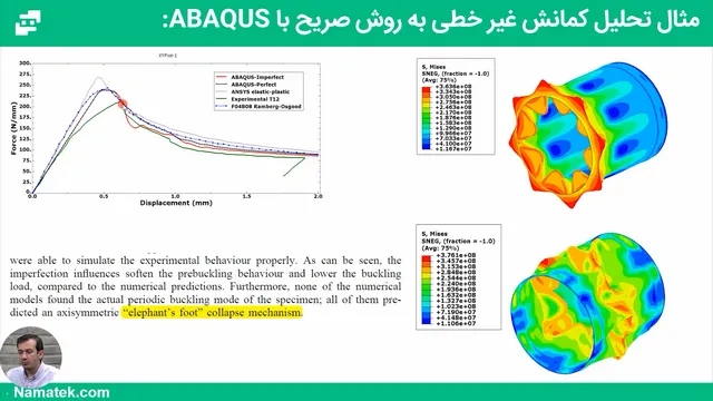• مقایسه پاسخ شبیه سازی کمانش غیرخطی با و بدون در نظر گرفتن نقص هندسی