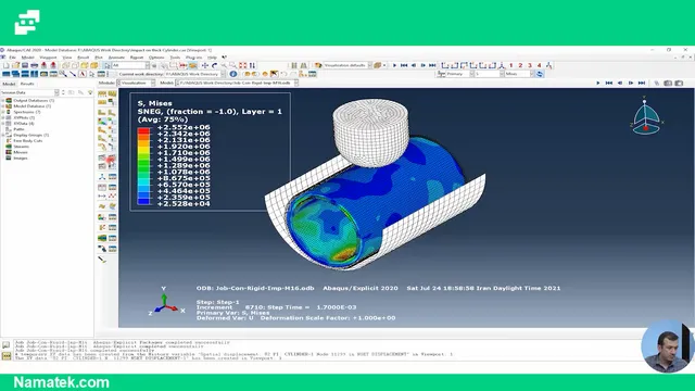 • حل مثال اعتبار‌سنجی شبیه سازی ضربه کم سرعت بر روی استوانه کامپوزیتی ضخیم